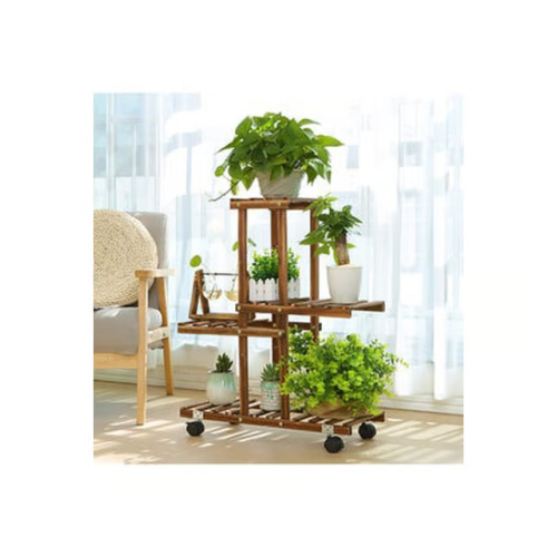 Ahşap Çiçeklik Saksı Standı 4 Katlı Dekoratif Tekerlekli Çiçek Standı